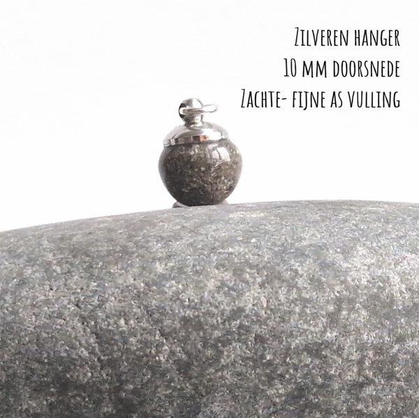 Deze ashanger van 10 mm doorsnede, wordt met liefde en aandacht samengesteld en is bedoeld als een tastbare, blijvende herinnering. In het glazen bolletje wordt de as zorgvuldig verwerkt tot een persoonlijk en uniek kunstwerkje – geen twee hangers zijn hetzelfde.